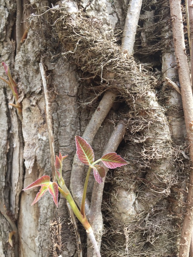 • Poison Ivy is sprouting! I always alert, having had my share of bad bouts with this stuff … I have not seen any tree-climbing Poison Ivy since leaving the Royal Botanical Gardens. Here’s hoping!