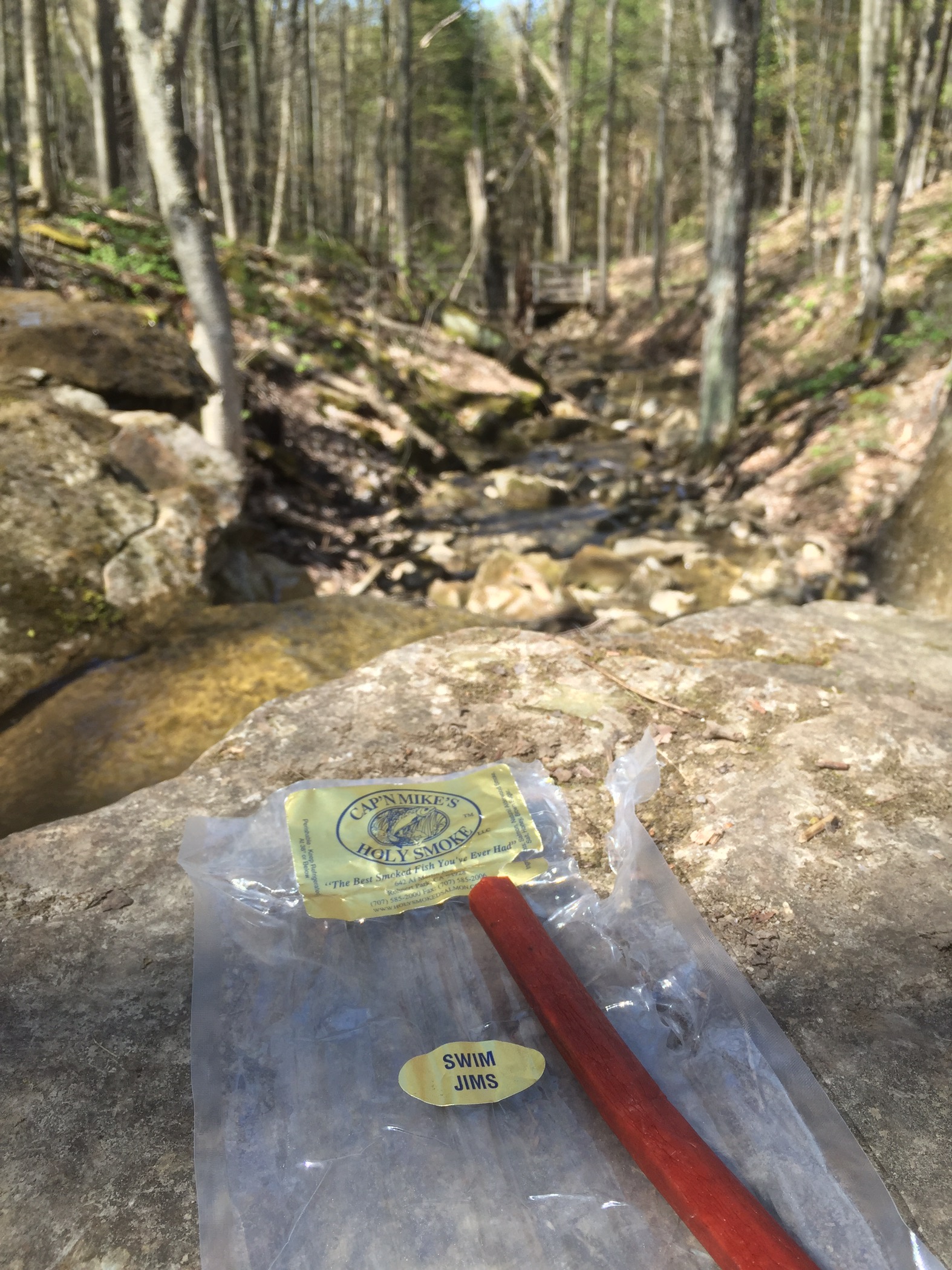 There were some gorgeous rocky sections as we wove our way westwards along the southern edge of the Noisy River. Perhaps the most striking of the crevices we’ve passed along the Trail ran parallel to the Trail. (Actually vice-versa, I suppose …)