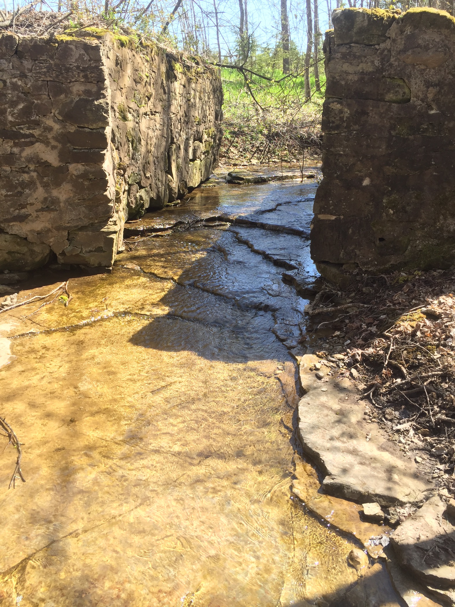 Abuttments of an old military bridge where Hurontario Street crosses a tributary of Black Bank Creek