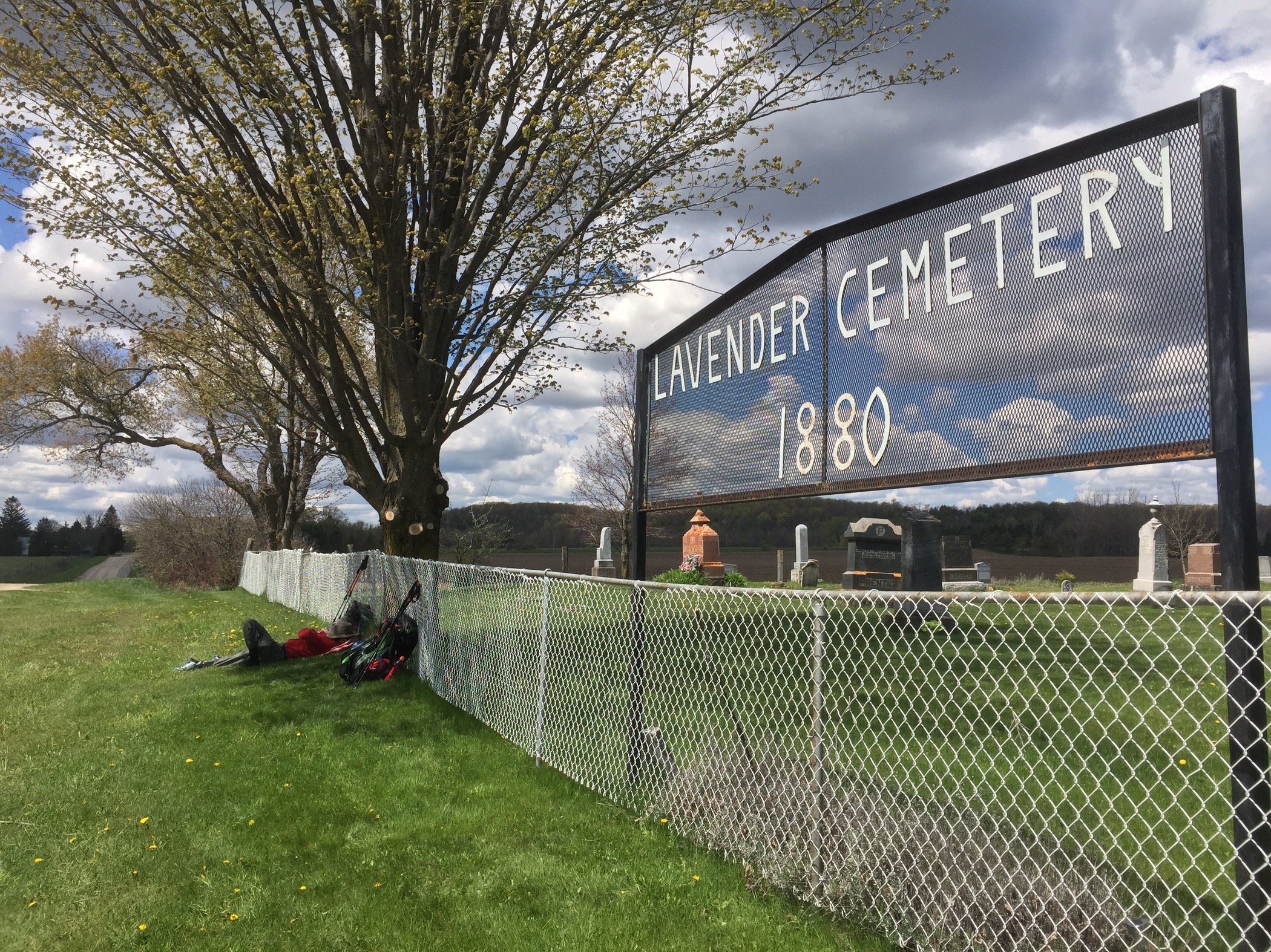Any excuse works for a trailside nap, and today’s nap featured the shade of the trees beside the Lavender Cemetery, complete with the constant joyous gurgling of bobolinks in the adjoining field.