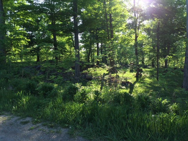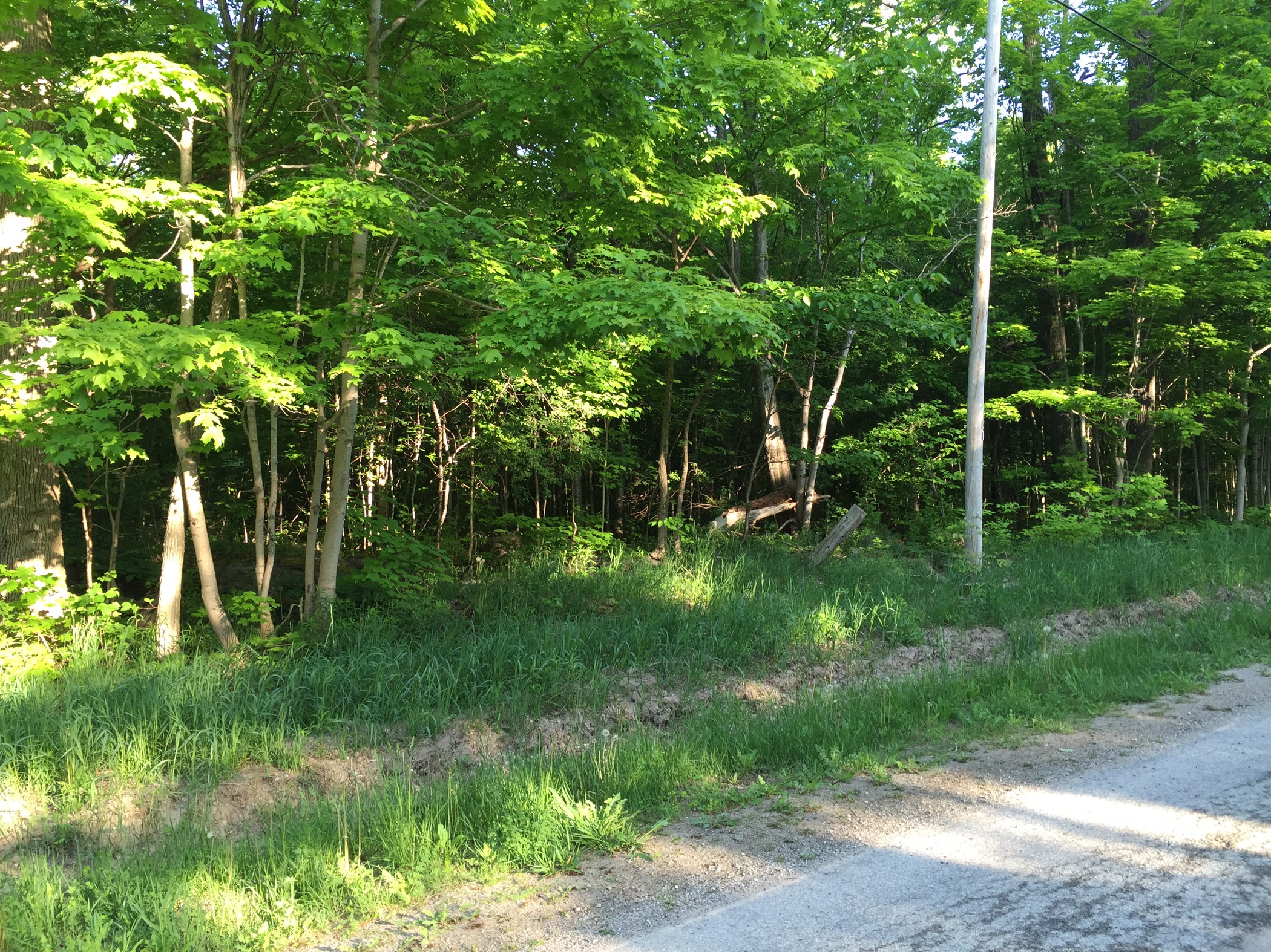 • Courtesy of a cow-calf farmer who has kicked the Bruce Trail off his land (because inconsiderate and disobedient hikers let their dogs run freely amongst his cattle), I have two photos showing a stark example of heavy grazing. The first is looking northeast into his presently grazed forests. For the second, I swiveled 90 degrees to the northeast and shot into the forest on the other side of the road, a forest that is a few decades younger but to my eye had never been grazed.
