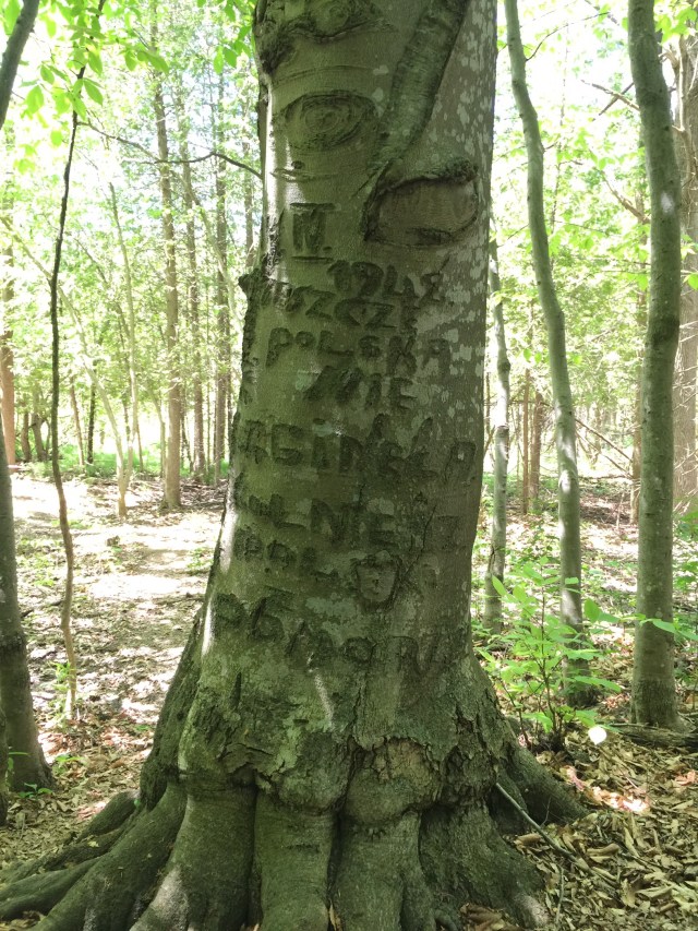 • The Polish Tree, carved in 1942 by a Polish soldier being trained nearby. (Translation, please!)