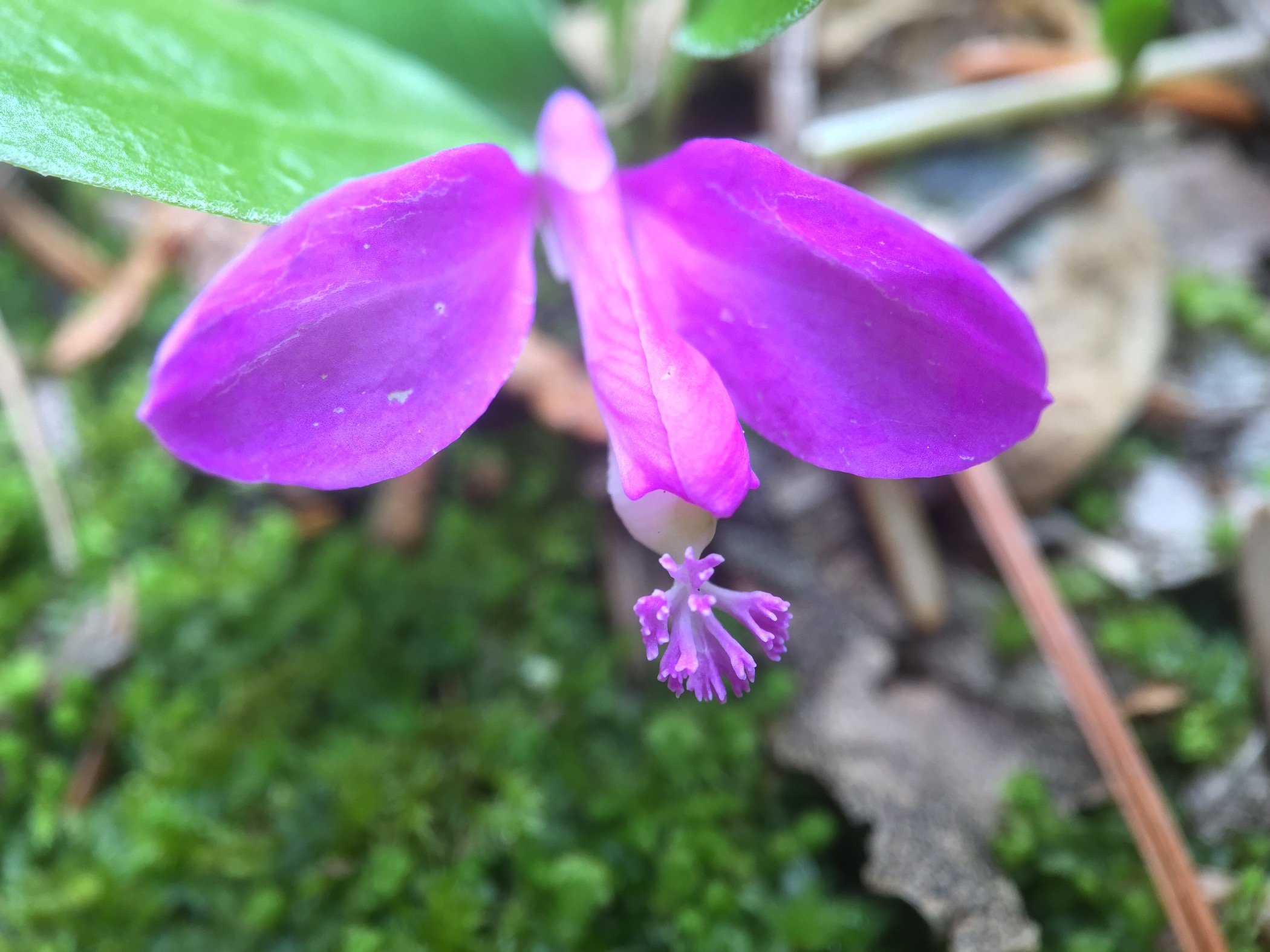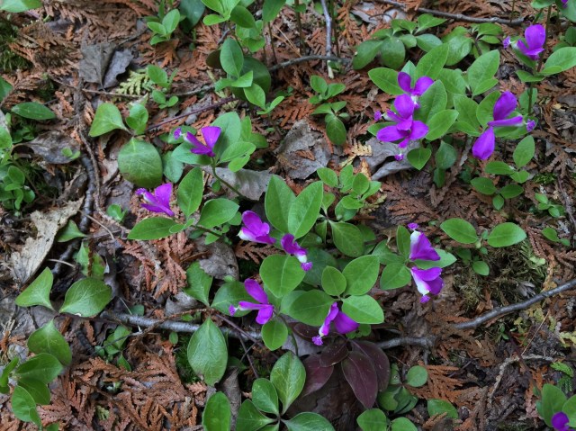 They appeared like an apparition, suddenly in amazing carpets of vivid pink and white with delicate lacy fringes at their throats: Gaywings, Polygala paucifolia — Thorpee’s flower! One of our most beautiful flowers! I’ve never seen so many!