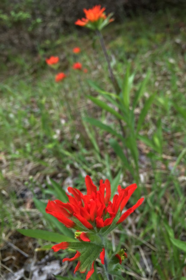 Another of our extravagantly coloured flowers appeared later today, mostly on the cedar & juniper alvars: Paimted Scarlet Cup, Castilleja coccinia. Deep rich reds are notoriously difficult for digital cameras to capture, and the ragged bracts which give the flower head its distinctive colour certainly fall onto this category.