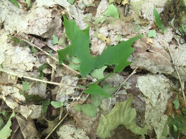 • I began wondering if they might be associated with Trout Lily. Erythroniums have withered and all but disappeared over the last several weeks, but despite their massive presence along the Trail, there are few fruits to show. Could these sprouts I’ve been seeing be cleistogamous flowers of Trout Lily? Really?