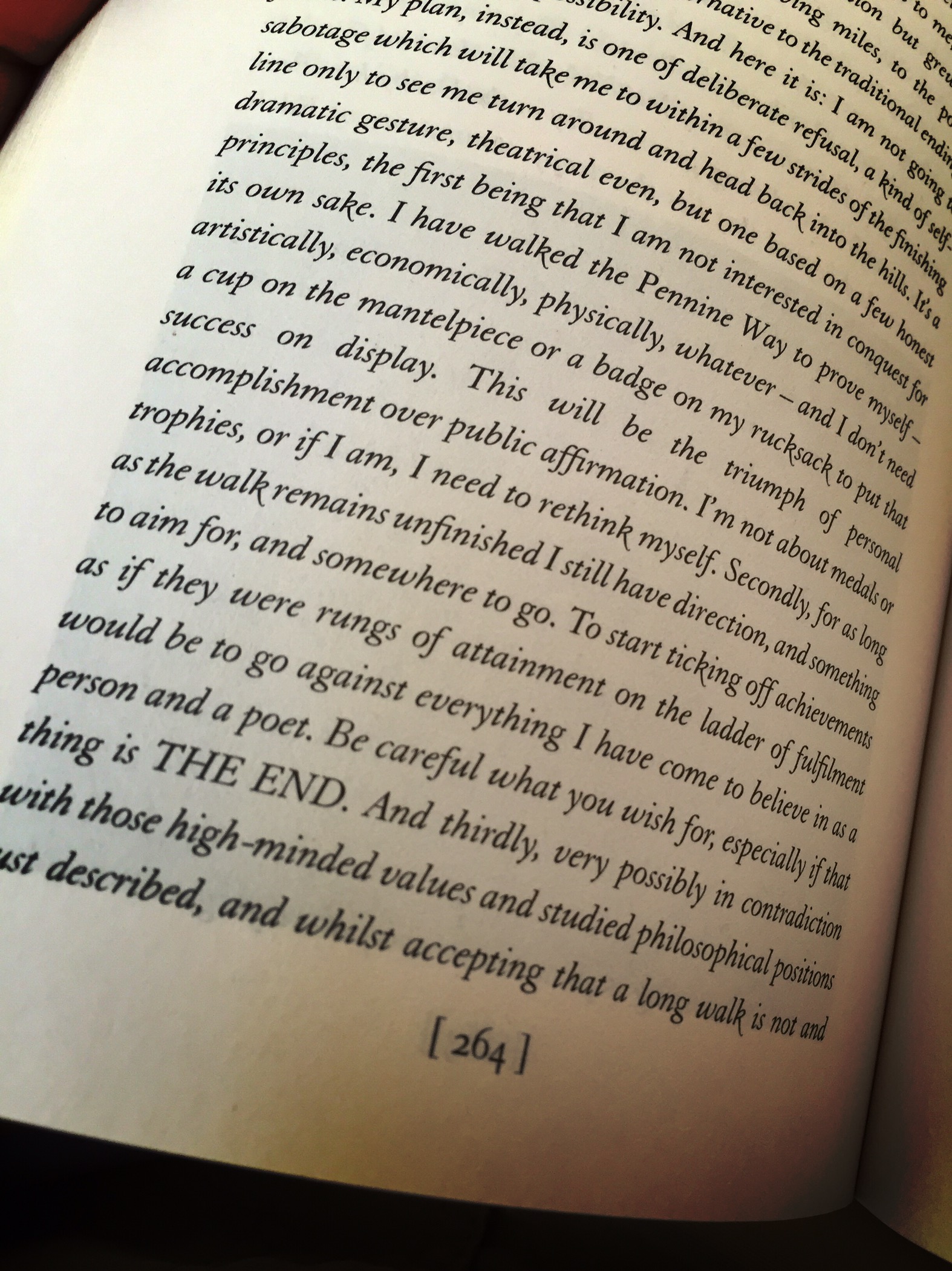 The two italicized excerpts above are from his imagined ending of his nineteen days and 256 mile journey.