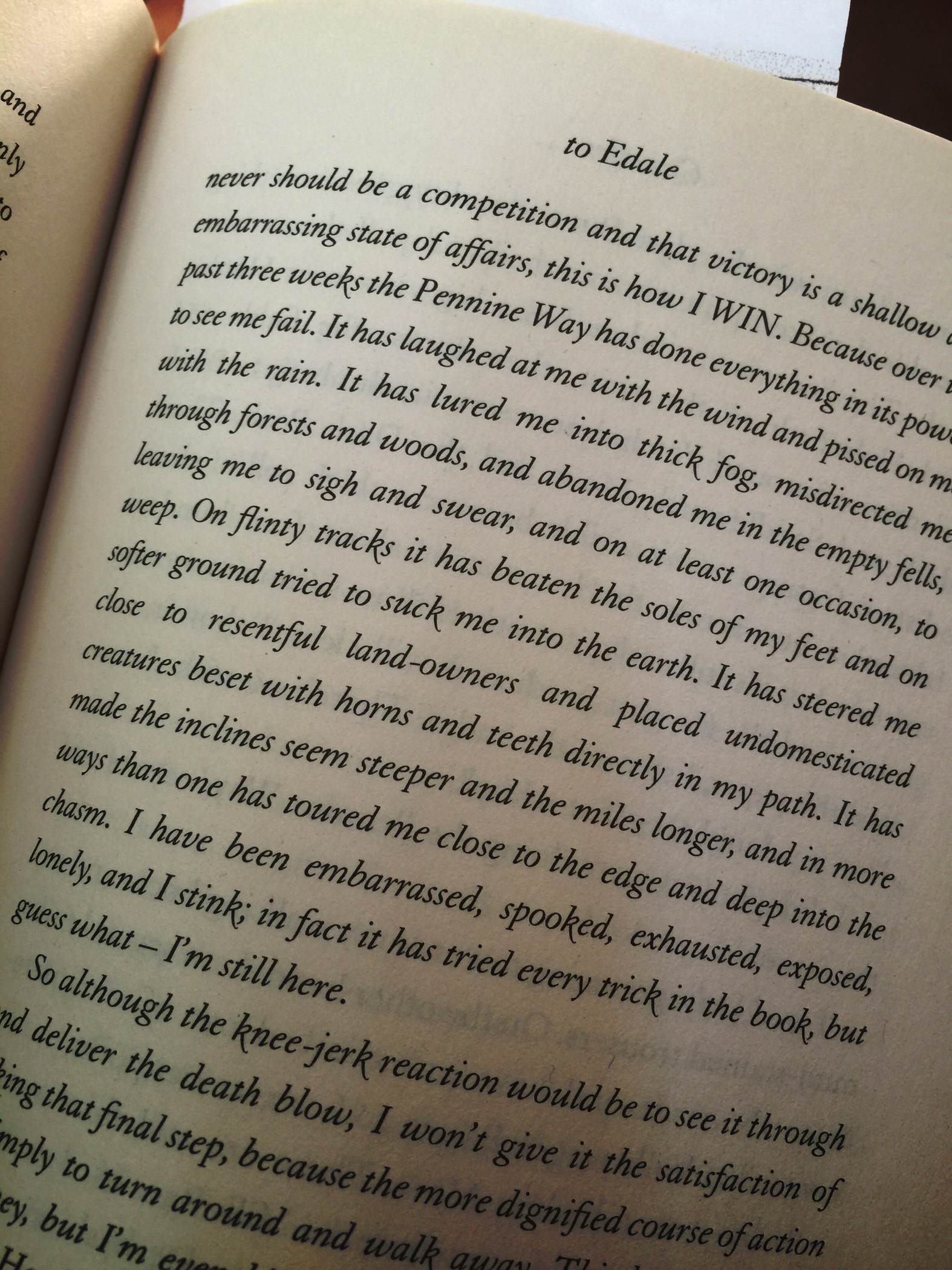 I was — and am unbalanced — by the underlying ‘struggle against nature’ thread. Mind you, we thruhiked in spectacularly opposite weather compared to the fog and wind and rains of Armitage’s northern English moorlands. Armitage faced challenging and dispiriting conditions that I am familiar with from my year up on Exmoor. I do have a good sense of how day-after-day is very different than one day only hiking. We had unusually pleasant sunny bug-free conditions instead.