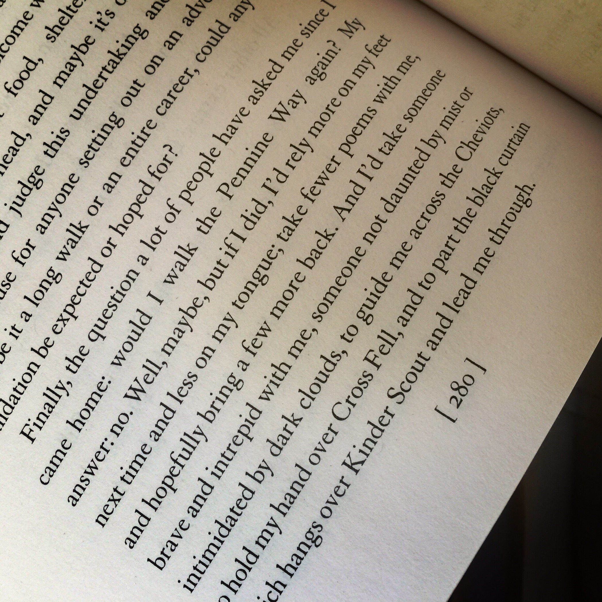 Walking Home is the thoughts of the modern poet Simon Armitage as he walks, trudges, and tramps the Pennine Way southbound from the Scottish Border to his home near Edale in Derbyshire.