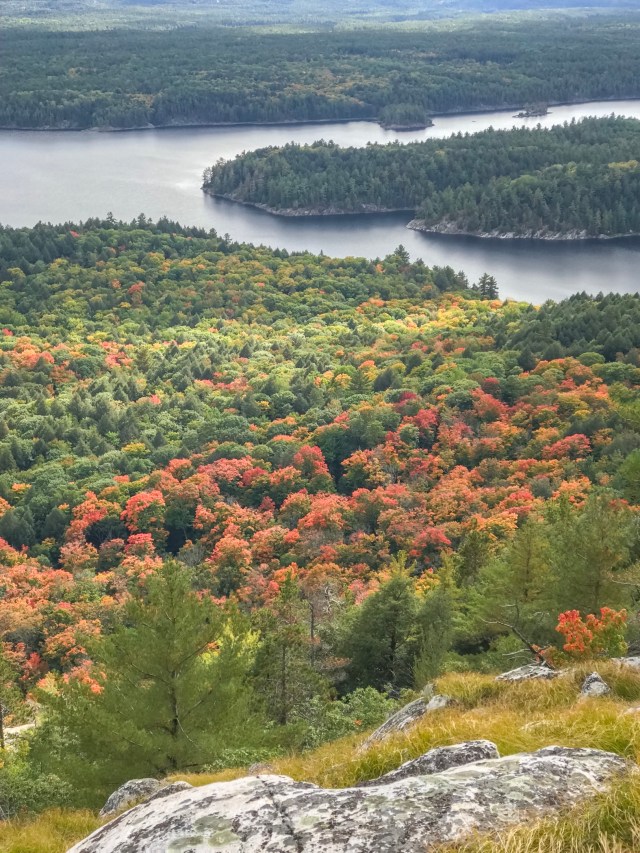 Some of the views from the open quartzite ‘balds’ on top of the ridges were spectacular! The Red Maples are coming out in full blaze, highlighting every spot with softer rock and more moisture. The views across Threenarrows Lake and the Kirk Creek swamps to the southern ridges are wonderful!
