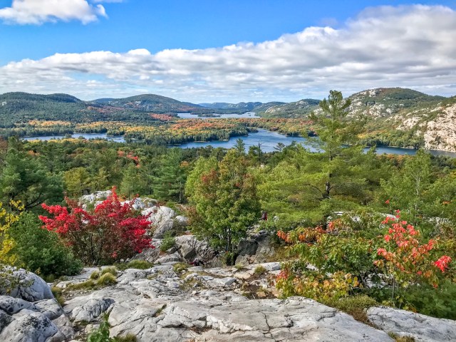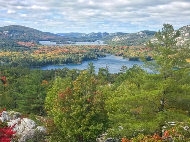 The gorgeous views from the tops of the hills were getting brighter. The Red Maples were intensifying in colour, and the other hardwoods were also beginning to turn bright autumnal shades. There were noticeably fewer mushrooms on this eastern side of the park. The acorn crop was as remarkable however. The forested sections seemed to be flatter and richer than along the rockier northern portion of the trail. The frequent ups and downs continued.