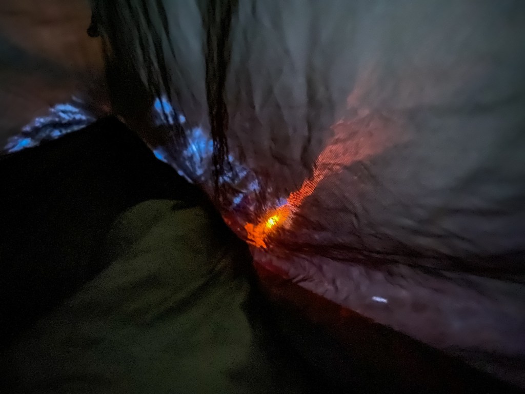 Ron and Josh stayed up to tend the fire that Dave and Josh had coaxed out of the abysmally wet wood, sharing and respecting and connecting. Lovely to hear that murmur, watching the firefight dance on the netting of my hammock.