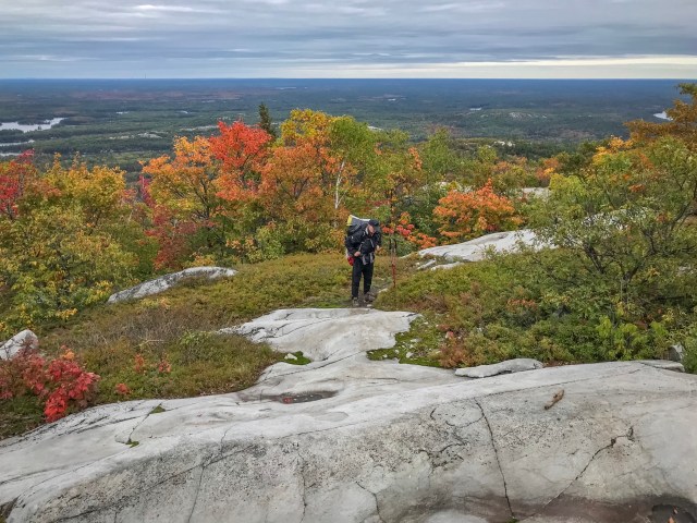 We intercepted two thirty-something day hikers out from the lovely Bell Lake Lodge on a day hike up to Silver Peak. They were already over a kilometre off the path, now going north and west when they should have already been almost up the Peak south and west. They’d seen the orange blazes labelled for the Silver Peak path up, but without a map had decided to stick to the blue blazes of the main hiking trail. They would likely have noticed after fifteen minutes if they’d continued on past us that they were heading away from Silver Peak — but, yikes! We did eventually see them just below the summit as they were headed down and back to Bell Lake. They thanked us for correcting them, and admitted they didn’t have a map. (They each had very minimal day packs, holding water bottles in their hands. Not well prepared!)